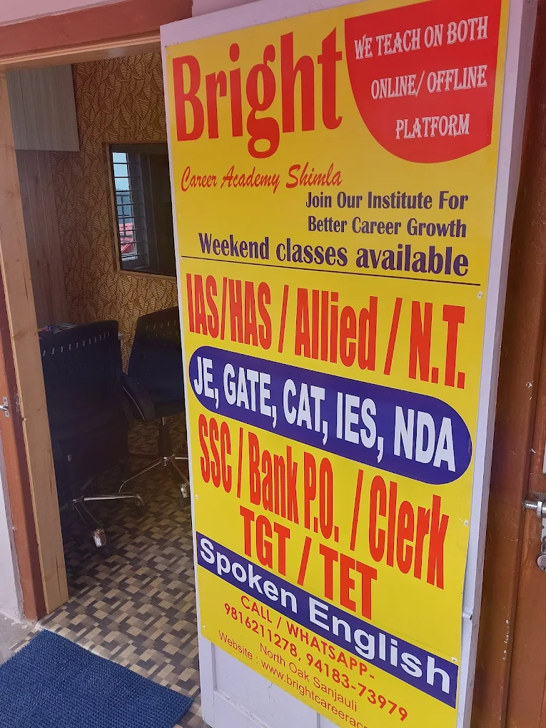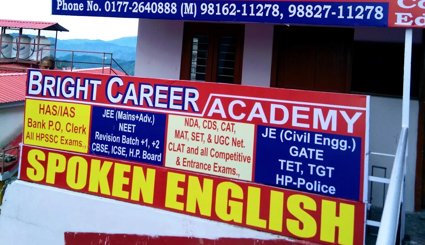 Bright Career Academy, located in Sanjauli, Shimla, is one of the top coaching institutes for SSC, Banking, HPAS, HAS, NDA, CDS, JOA IT, IIT-JEE, NEET, CAT, and other government exams. We specialize in result-oriented coaching with experienced faculty, updated study material, regular mock tests, and personalized guidance. Our academy has helped thousands of students secure government jobs. Whether you're preparing for SSC exams, Bank PO, or state-level services like HPAS, we offer both offline and online coaching to suit your needs. If you're looking for coaching in Shimla for SSC, Banking, or competitive exams, Bright Career Academy is your trusted destination. Join today and take the first step toward your successful government career!